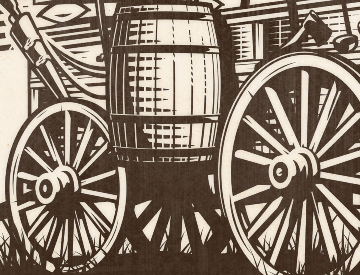 I created a covered wagon illustration for use in a logo for a local restaurant a few years ago. For their 50th anniversary they asked me to create a chuck wagon illustration in the same style.